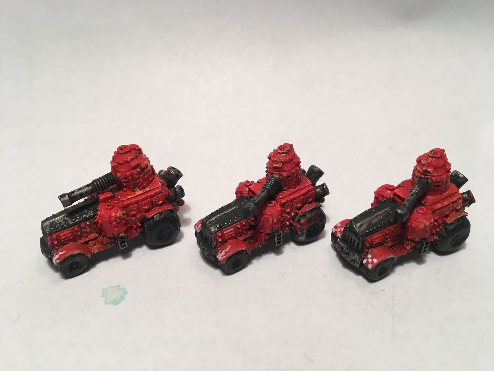 Behold the first batch of mighty battlewagons, ready to roar across the battlefield and wreck havoc and devastation upon my enemy! If they don't break down en route :)